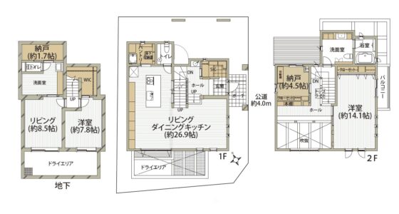 敷地全体面積 | 延べ床面積 | 170.35m²(51.53坪) | |